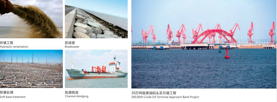 300,000 tons of crude oil terminal project, 250,000 tons of waterway engineering, 210,000 tons of breakwater and 10 square kilometers of hydraulic reclamation engineering and soft foundation treatment engineering in Liaodong Bay New District of Panjin, Liaoning province. The total investment is 11 billion RMB.